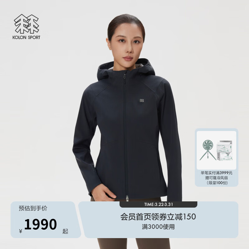 KOLON SPORT/可隆风脊软壳夹克 女士户外防风防水透湿外套 LKJK6MNT04-BK 黑色 L 170/92A
