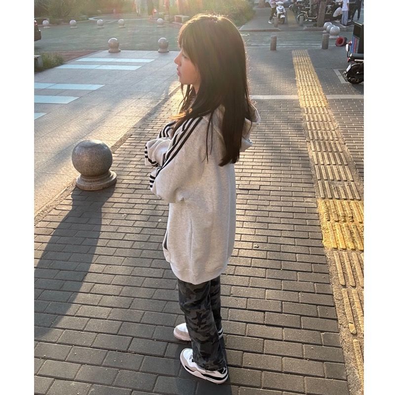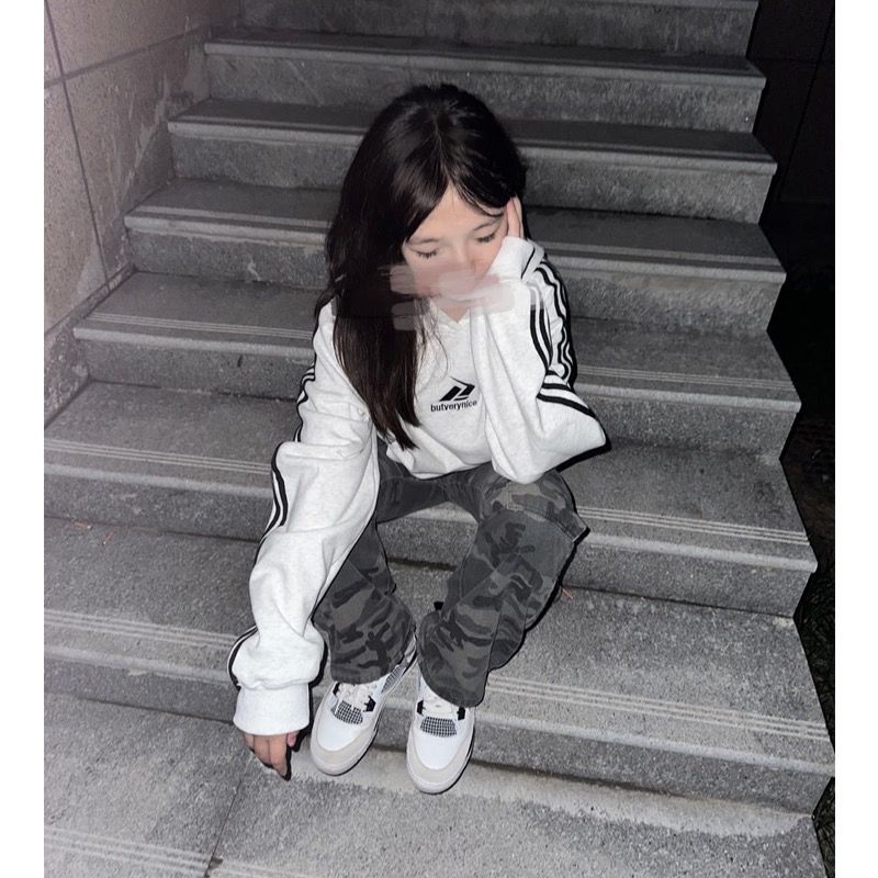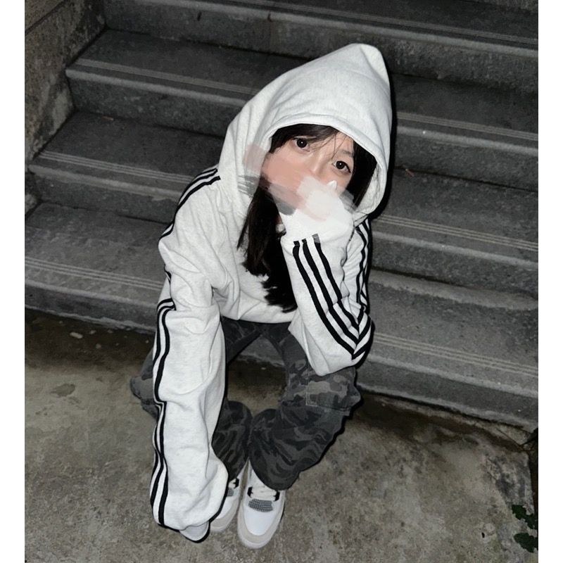 美式复古三杠条纹拼接连帽卫衣女2024年新款oversize外套