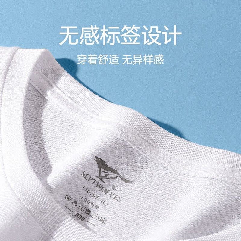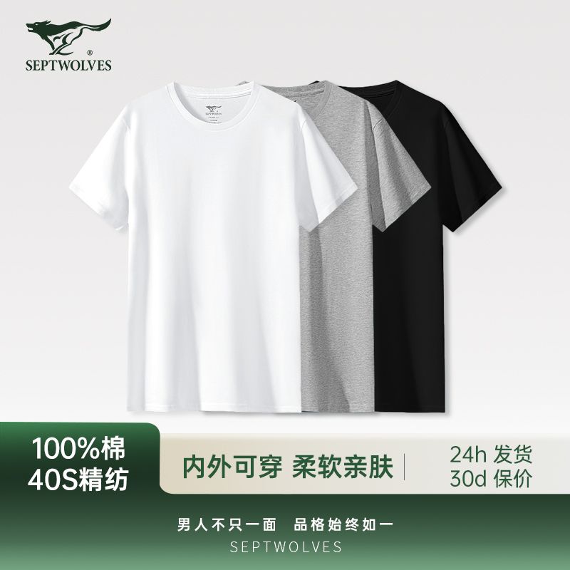 【三件装】七匹狼男士t恤纯棉圆领v领短袖夏季薄款纯色休闲简约款