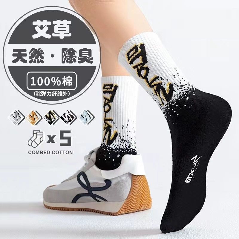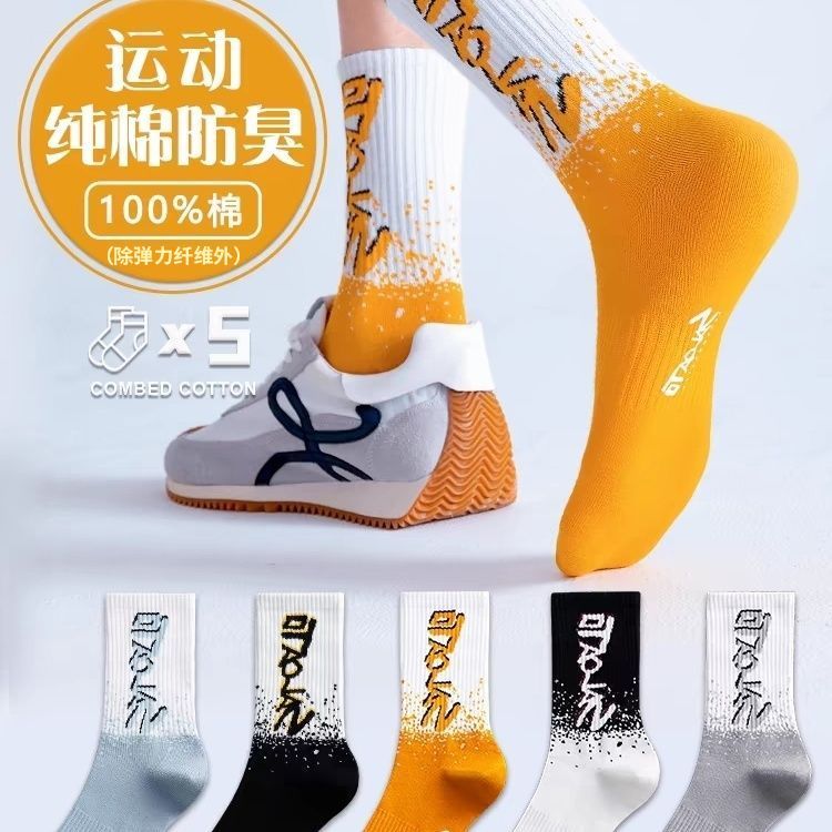 纯棉袜子男款吸汗透气袜子中筒防臭青少年潮袜高中生篮球运动长袜