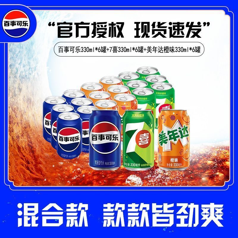 【到手18罐】百事可乐美年达七喜组合6+6+6碳酸饮料聚会批发正品
