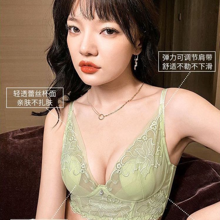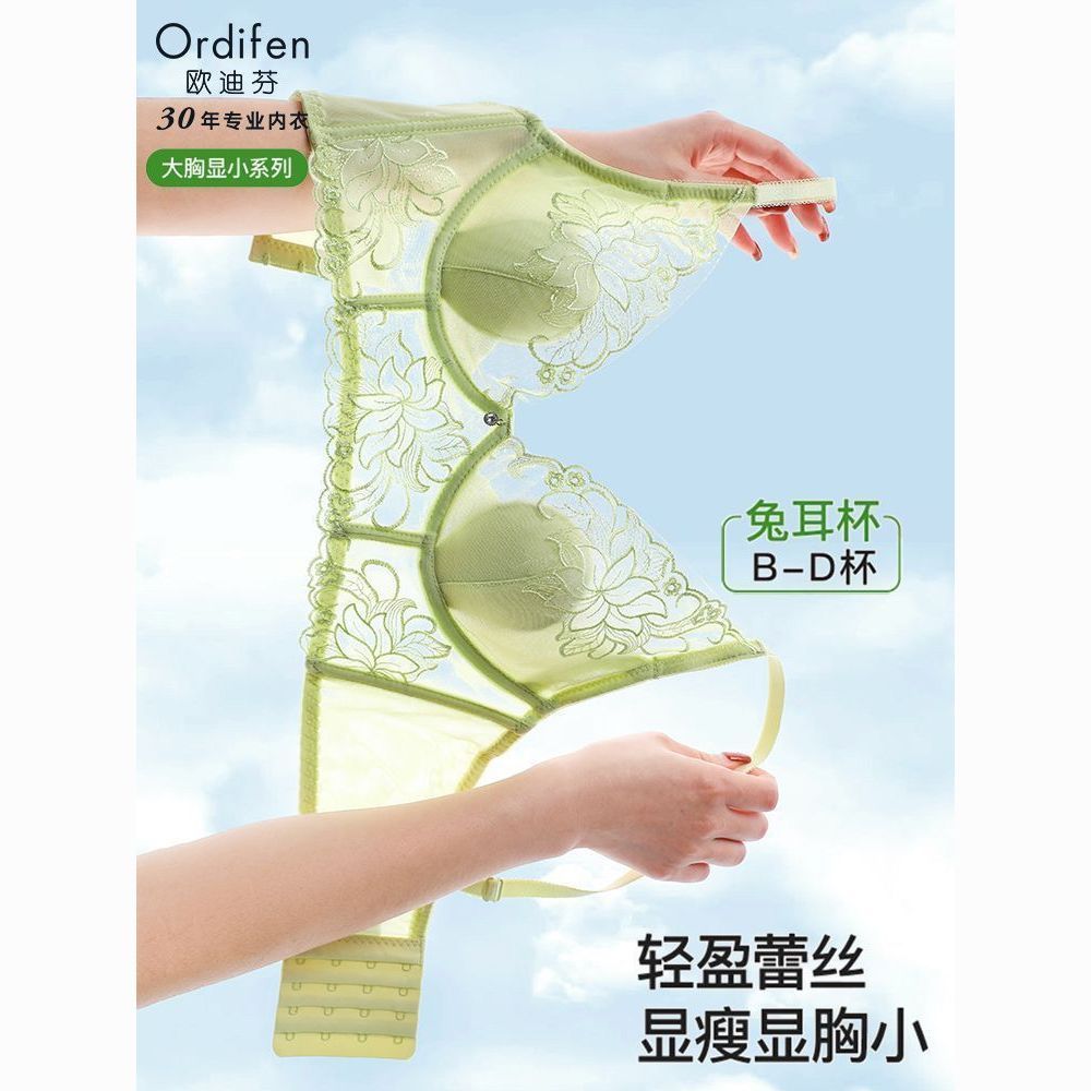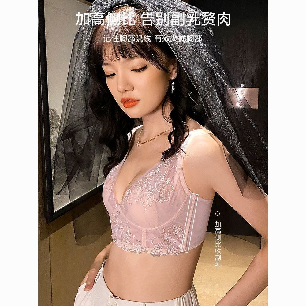 【猫人】聚拢内衣女大胸显小收副乳上托防下垂夏季透气蕾丝文胸罩
