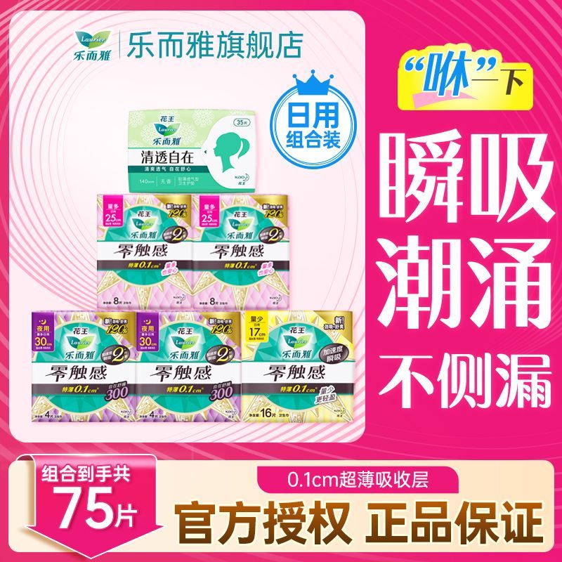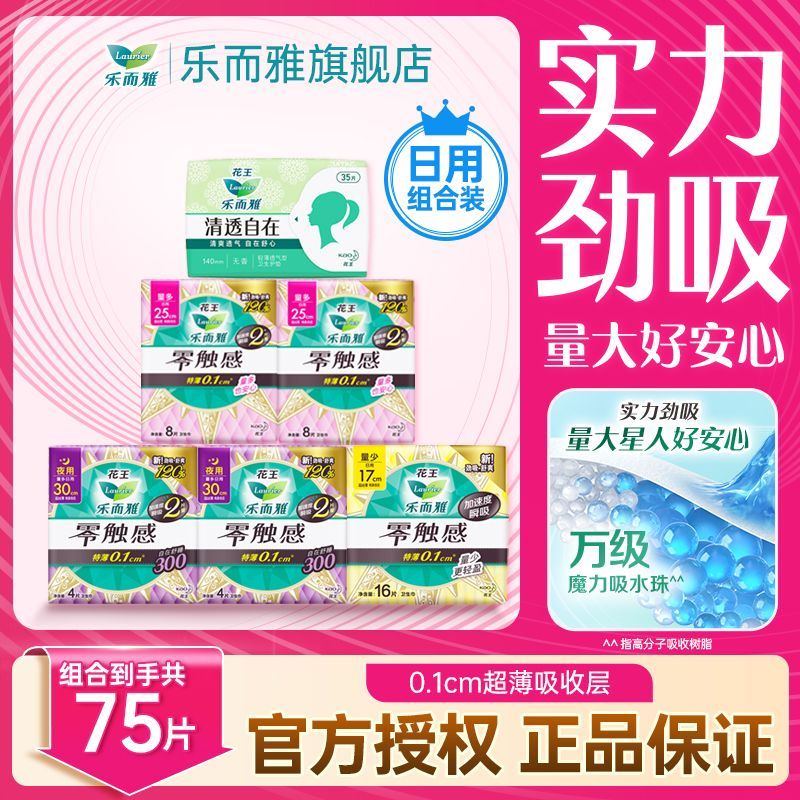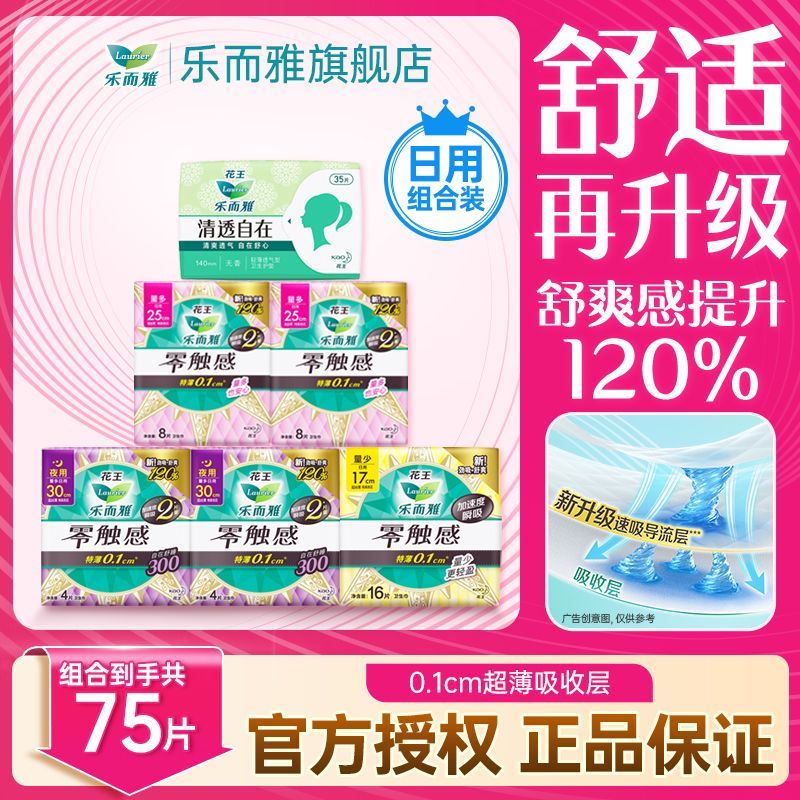 花王乐而雅卫生巾零触感250mm棉柔防侧漏日用组合装一周期卫生巾