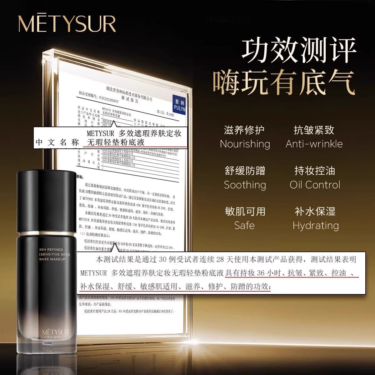 美媞秀紧致养肤日不落不脱脱妆粉底液持妆防水防汗控油抗皱一整天