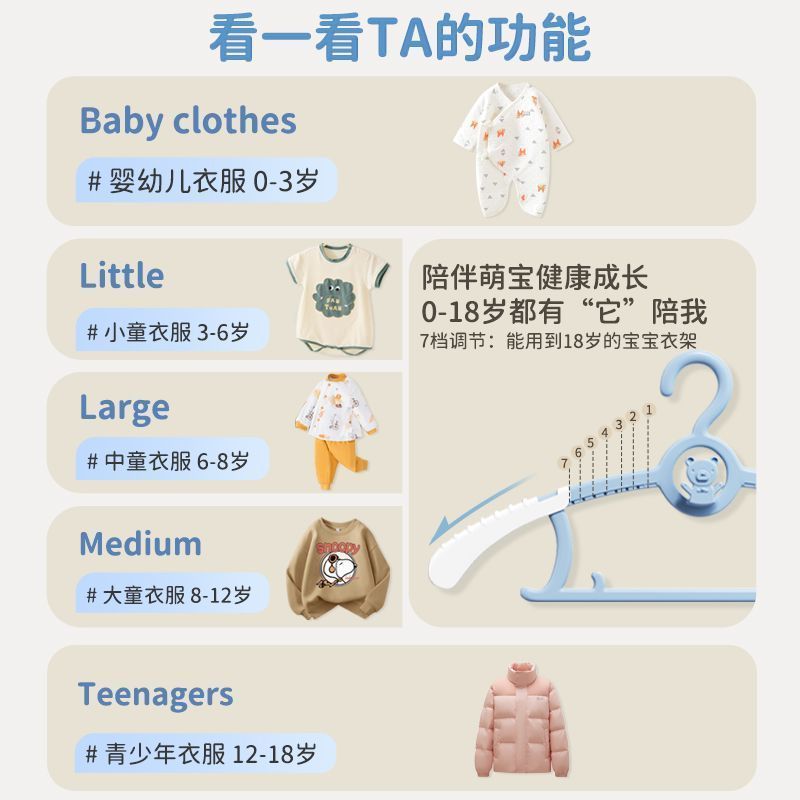 佳适30个装儿童衣架婴儿宝宝母婴级家用多功能防滑衣架可伸缩