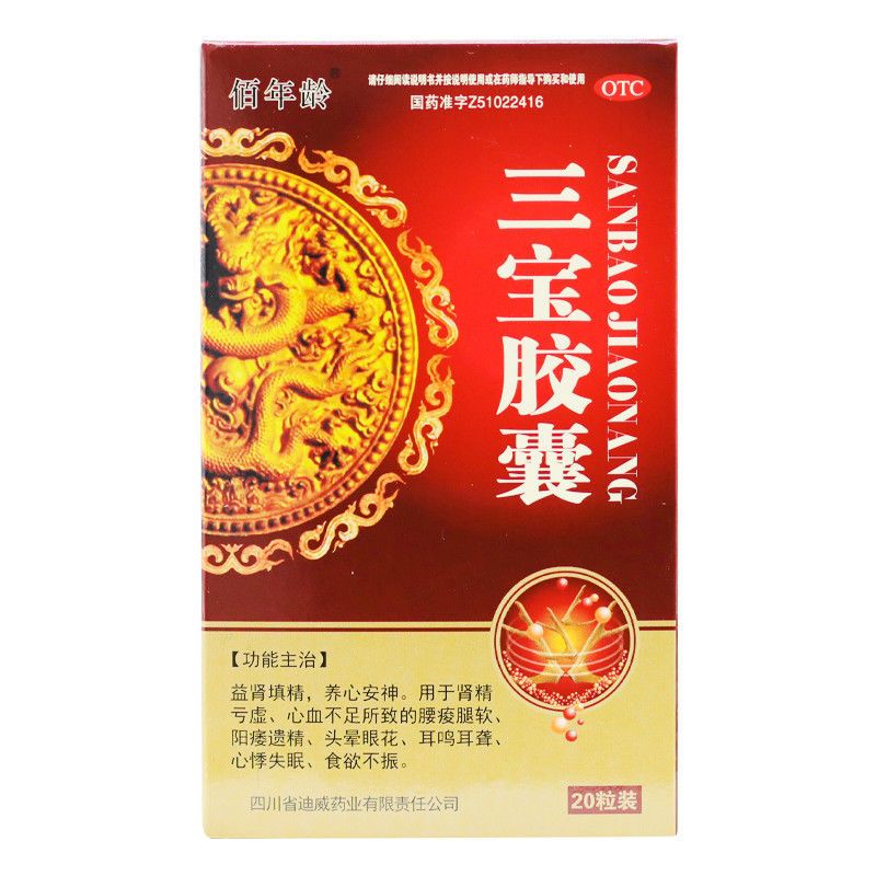 佰年龄 三宝胶囊 0.3g*20粒/盒 肾虚肾气不足引起神经性耳鸣耳聋耳朵嗡嗡响蝉鸣声脑子一直响