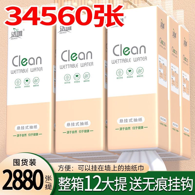 2880张挂式抽纸整箱批发家庭装悬挂纸巾卫生纸厕纸餐巾纸底部抽纸