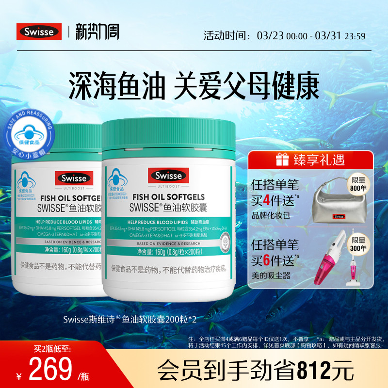 Swisse斯维诗无腥味成人中老年深海鱼油软胶囊保健品降血脂官方