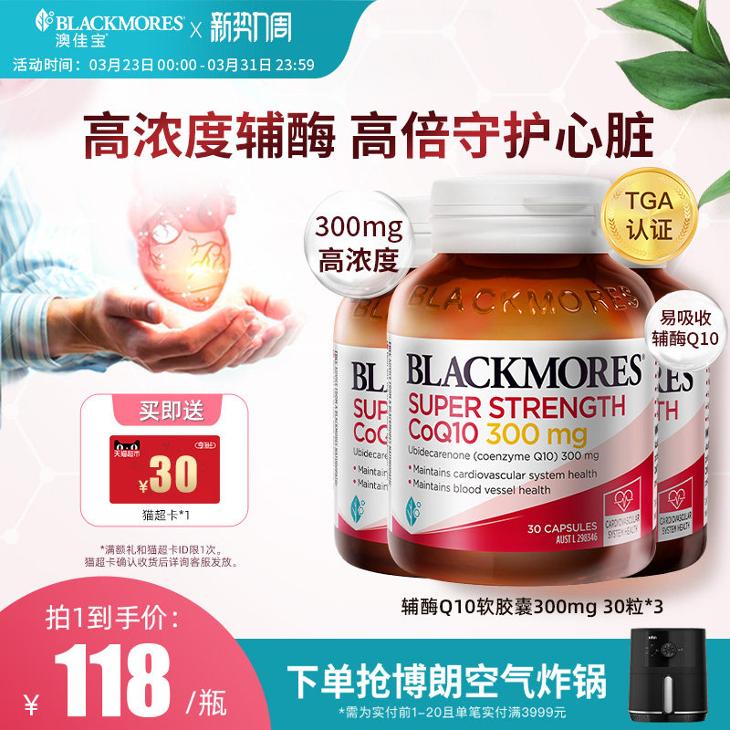 澳佳宝高浓度辅酶q10软胶囊300mg30粒*3瓶心血管心肌心脏保健品