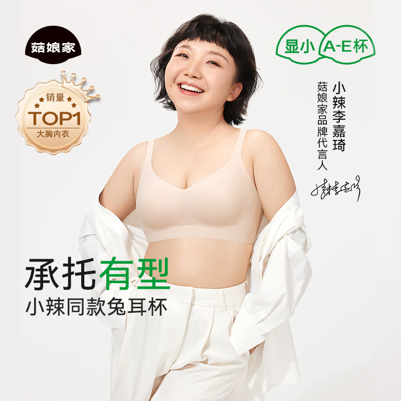 菇娘家兔耳杯内衣女夏薄款大胸显小聚拢收副乳防下垂女士文胸罩
