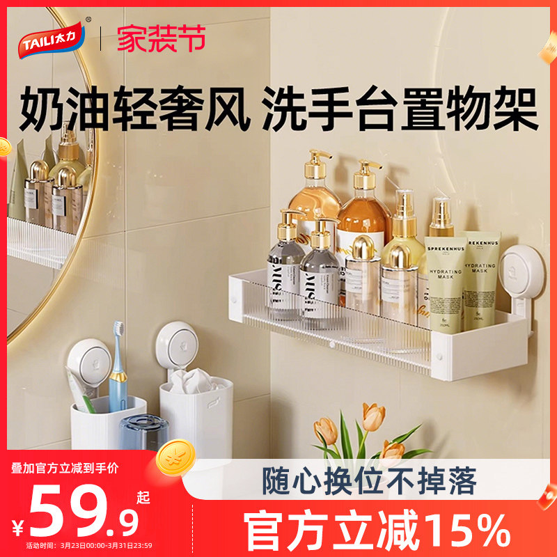 太力免打孔浴室卫生间置物架子厕所洗漱台洗手间卫浴吸盘收纳架子