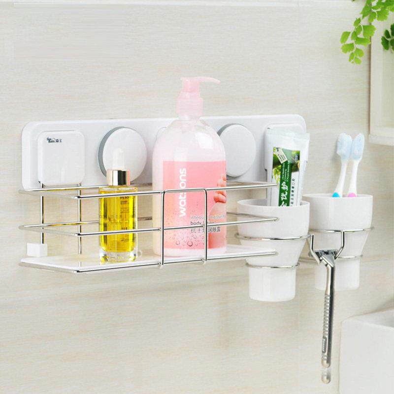 嘉宝化妆室吸盘收纳层架厕所卫浴架浴室置物架多功能壁挂牙刷架
