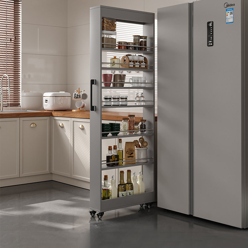 蜂窝铝厨房置物架冰箱缝隙收纳柜大容量侧拉窄柜可移动落地餐边柜