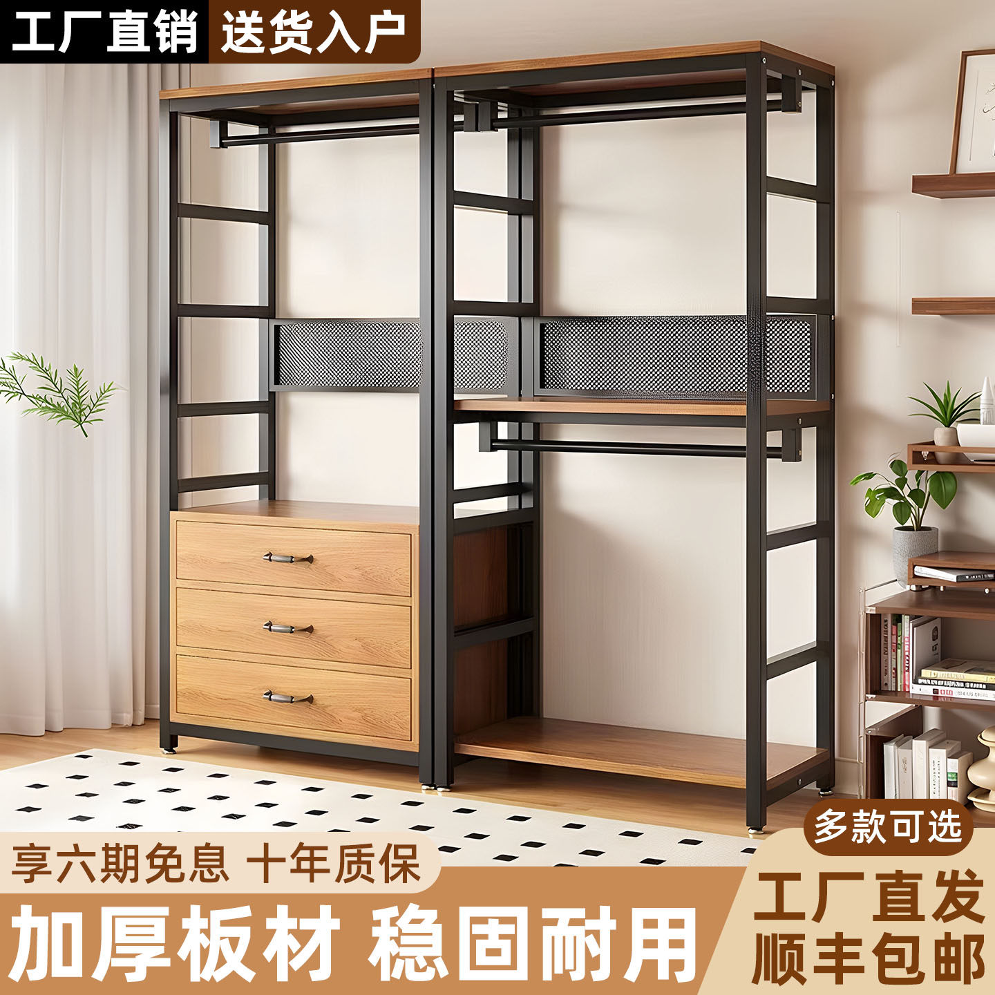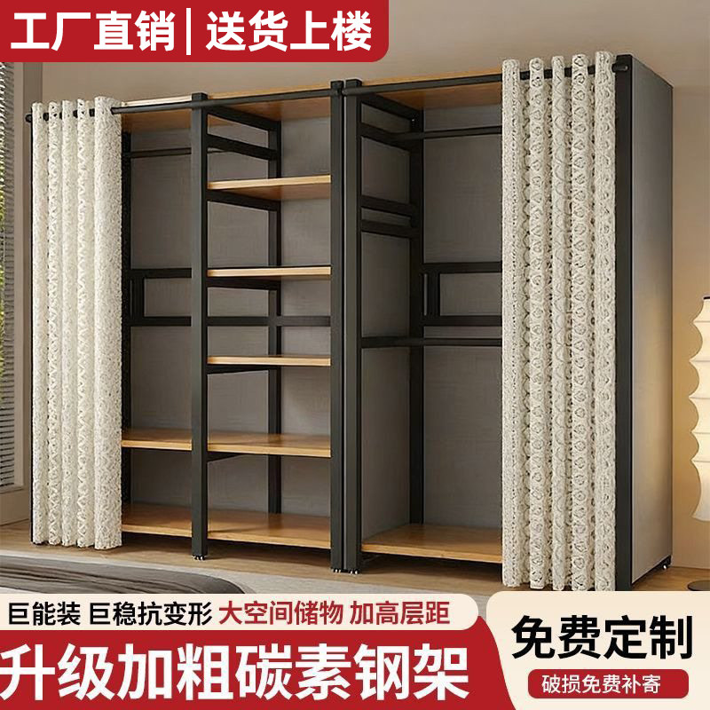 开放式衣柜步入式家用衣帽间架子落地衣架出租房金属防尘衣帽架