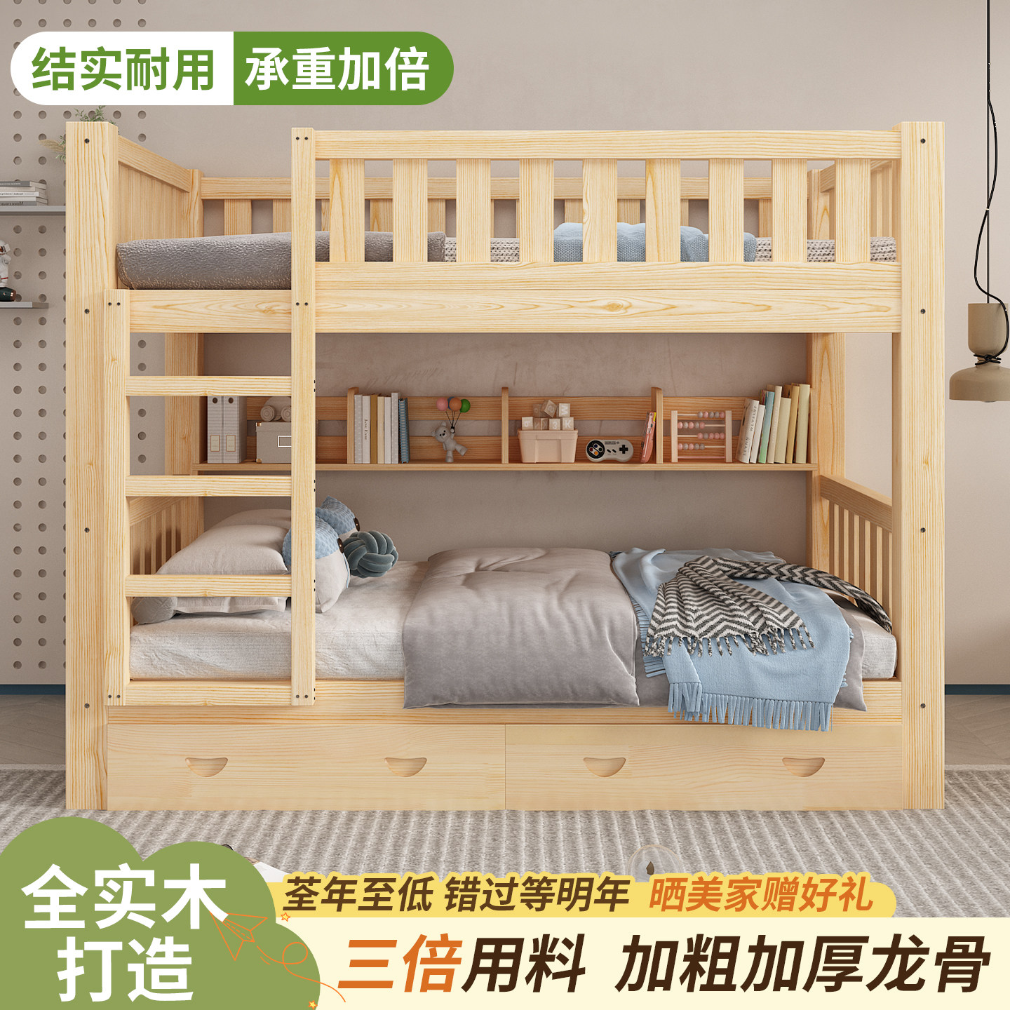 实木上下床双层床两层高低床双人床小户型儿童床上下铺木床子母床