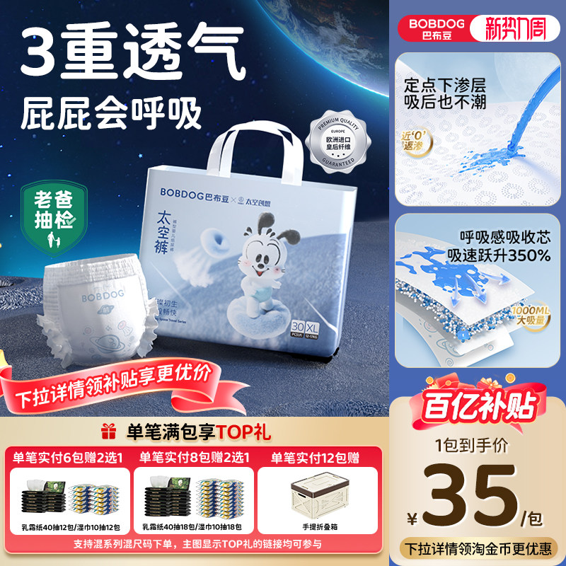 【精研护臀】巴布豆菠萝裤拉拉裤纸尿裤弱酸亲肤透气婴儿尿不湿