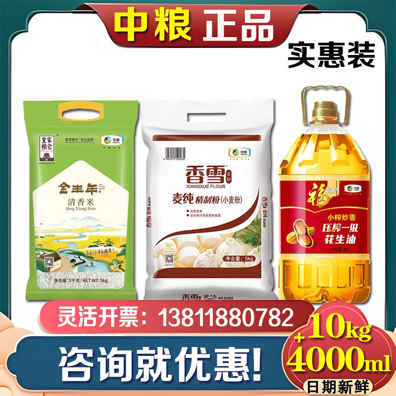 中粮米面油礼盒全家福粮油套装H大米5kg花生油4L面粉5kg企业福利