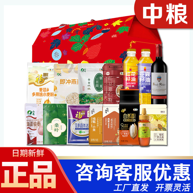 中粮福临门米面油大礼包红四方粮油套装C3花生油面粉节日送礼团购