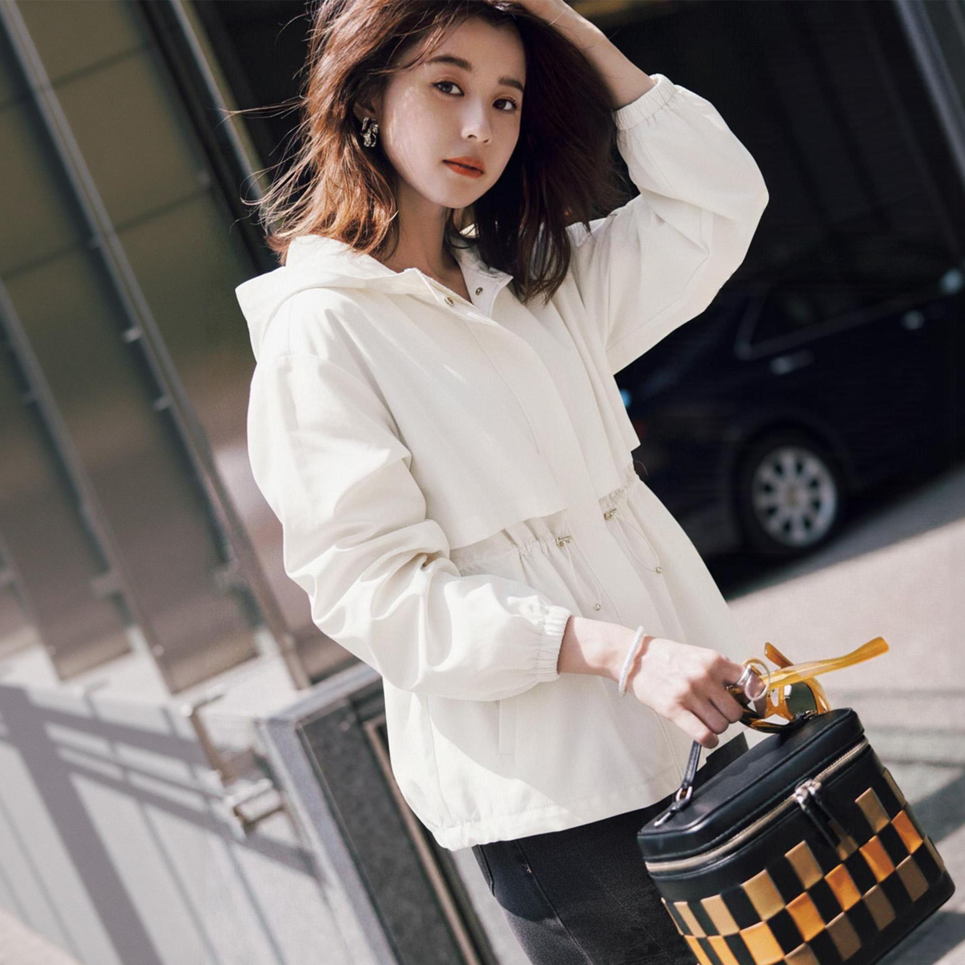 户外轻运动 【防风防水/收腰可调】连帽荷叶摆轻量感冲锋夹克外套