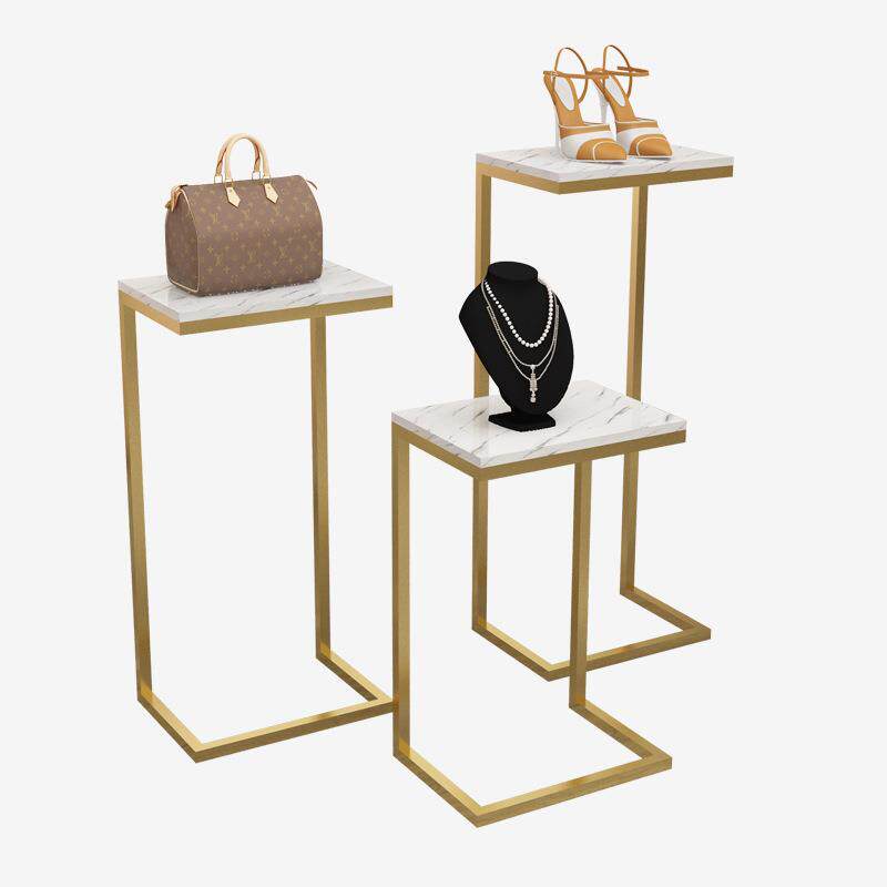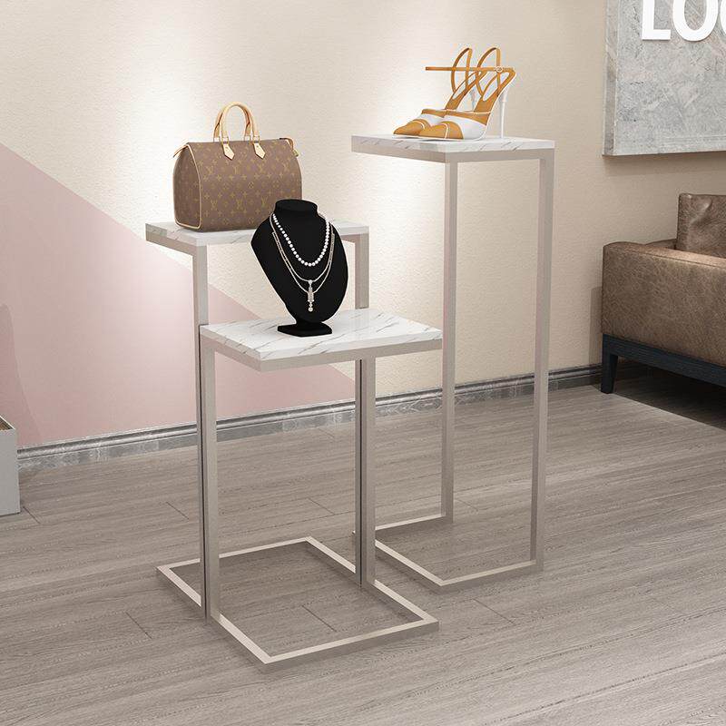 服装店铁艺橱窗展示架简约高低流水台中创意摆台鞋包饰品落地展台